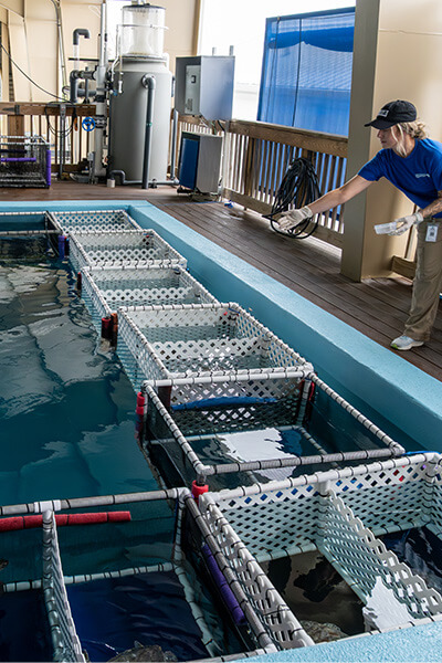 Interns will develop competency in daily sea turtle husbandry practices, including diet preparation, feeding techniques, water quality testing, habitat cleaning, and support of life support systems, applying best practices in animal welfare and biosecurity under staff supervision.