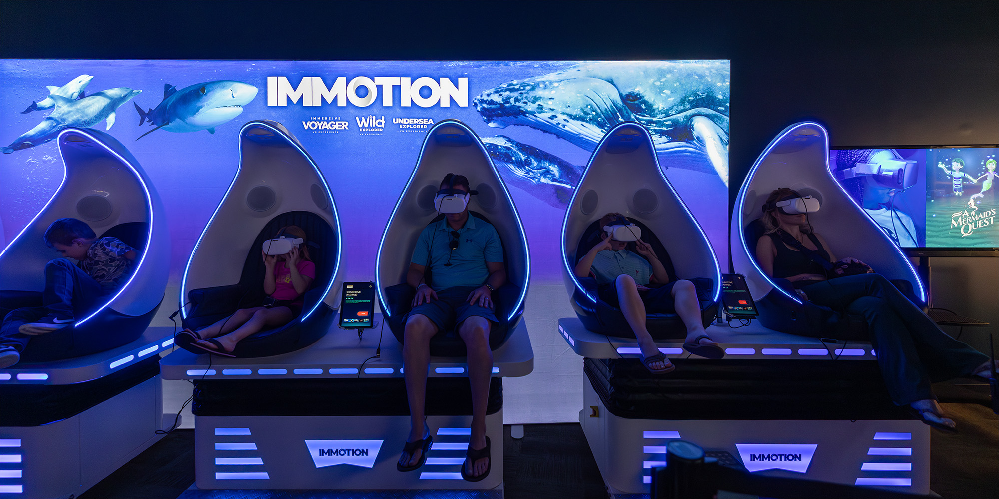 Ponte los auriculares, siéntate en tu acogedor asiento con movimiento de cine y prepárate para experimentar el océano en 360 grados, sin necesidad de equipo de buceo.