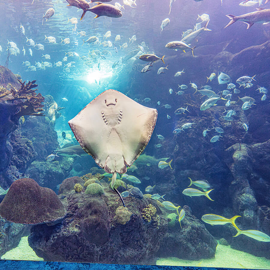 Sand tiger sharks, sea turtles, southern stingrays, and countless reef-dwelling fish meander through over 500,000 gallons of water in the Coral Reefs, our largest habitat. With so much to see and explore, you’ll want to spend hours gazing in awe at this mesmerizing panoramic window.