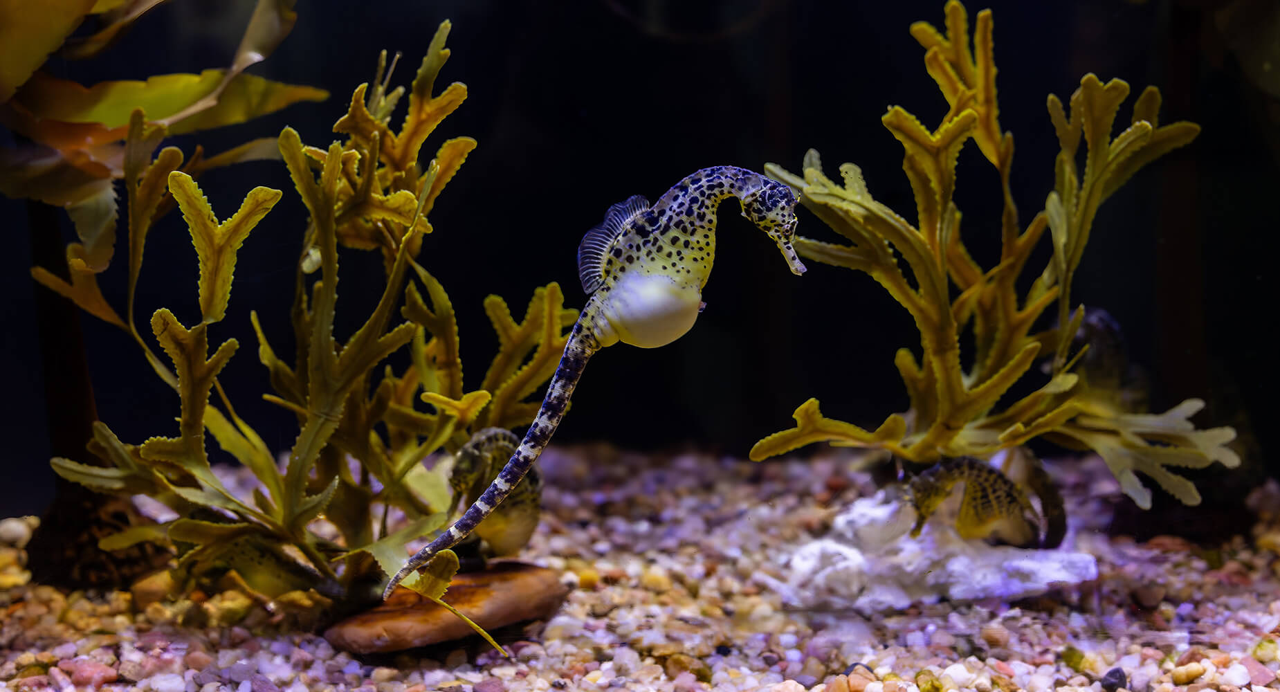 Tucked away in our Reef Secrets gallery, the dwarf seahorse shares the gallery with an array of other species, including the pot-bellied seahorse.