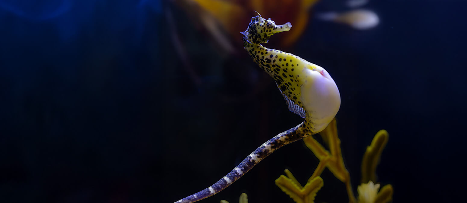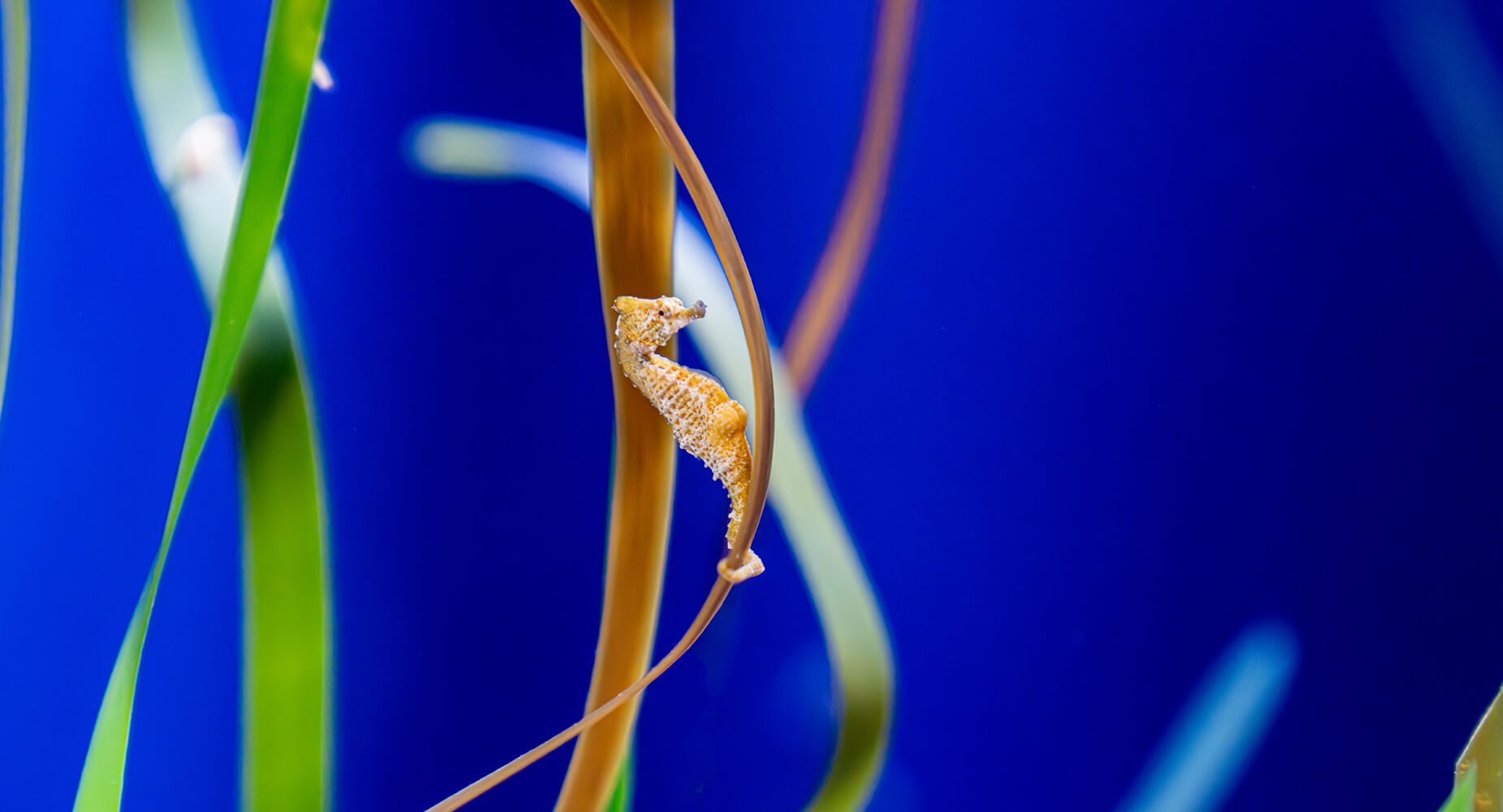 Tucked away in our Reef Secrets gallery, the pot-bellied seahorse shares its home with an array of other species, including the dwarf seahorse.