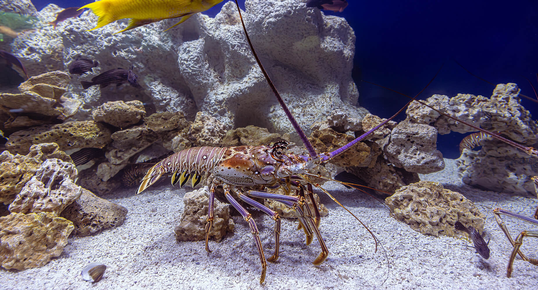 Burrowed deep in our Shorelines gallery, garden eels share their habitat with an array of other species, located across from the Florida Spiny Lobster.