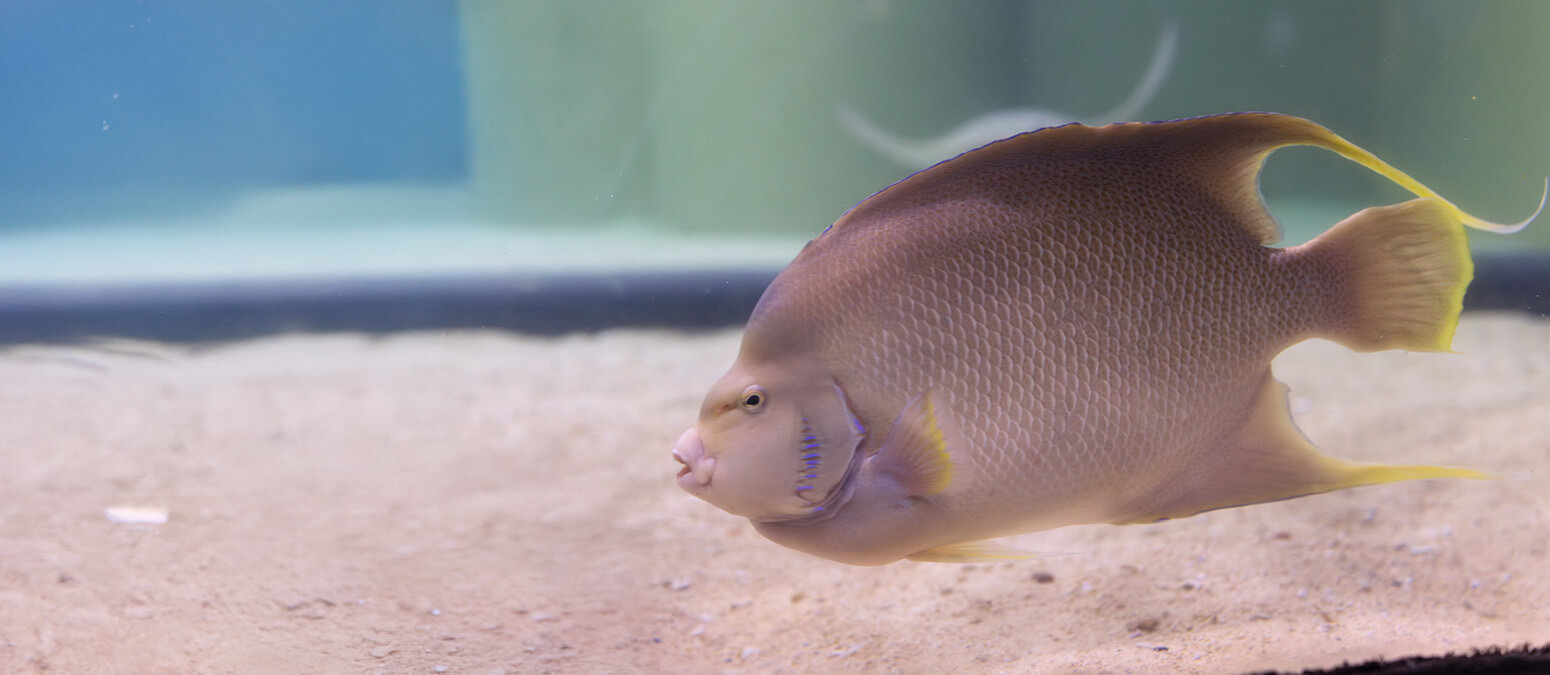 Adult blue angels are thought to be monogamous, usually found traveling in the same pairs throughout their lifespan. The females of this species are larger than males and breed year-round, producing up to 75 thousand eggs each day and as many as ten million during each spawning cycle.
