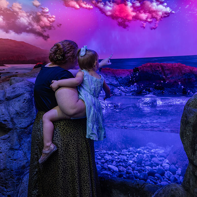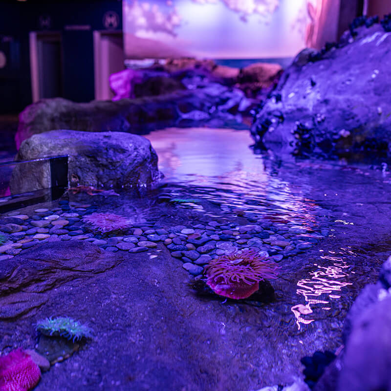 The Tide Pool invites you to explore the rugged beauty of the Pacific Northwest through more than 200 marine animals, including fascinating sea stars, squat lobsters, and colorful anemones. And when we say “meet,” we mean it. This touch habitat lets you reach down and feel some of the ocean’s most fascinating creatures.