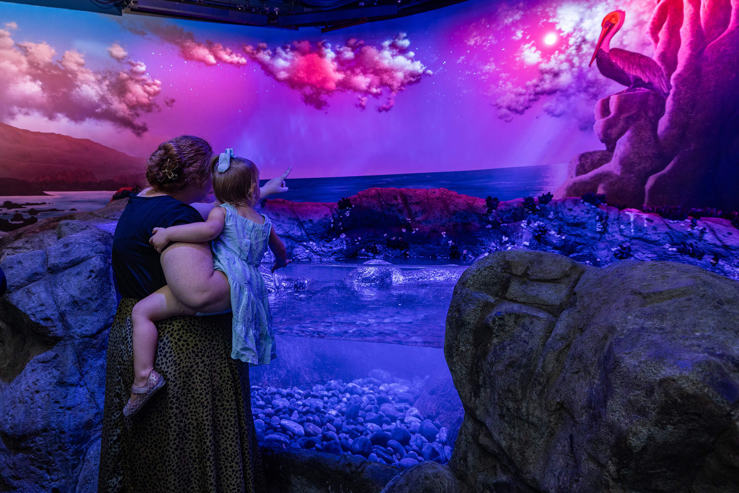 The Tide Pool invites you to explore the rugged beauty of the Pacific Northwest through more than 200 marine animals, including fascinating sea stars, squat lobsters, and colorful anemones. And when we say “meet,” we mean it. This touch habitat lets you reach down and feel some of the ocean’s most fascinating creatures.
