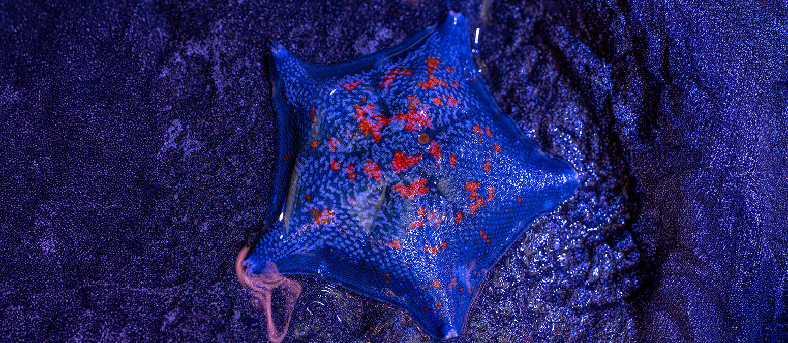 Nestled in the rocky shores of The Tide Pool, bat stars share their habitat with a variety of other species like the spot prawn.