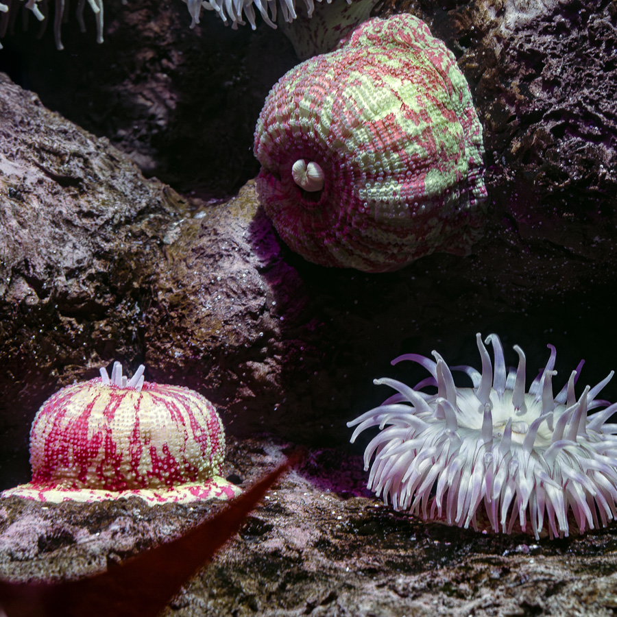Take a trip through the captivating Waves of Wonder to experience a diverse variety of colorful species. Meet mutualistic clownfish and anemones, oscillating and undulating jellies, and a color-shifting giant Pacific octopus.