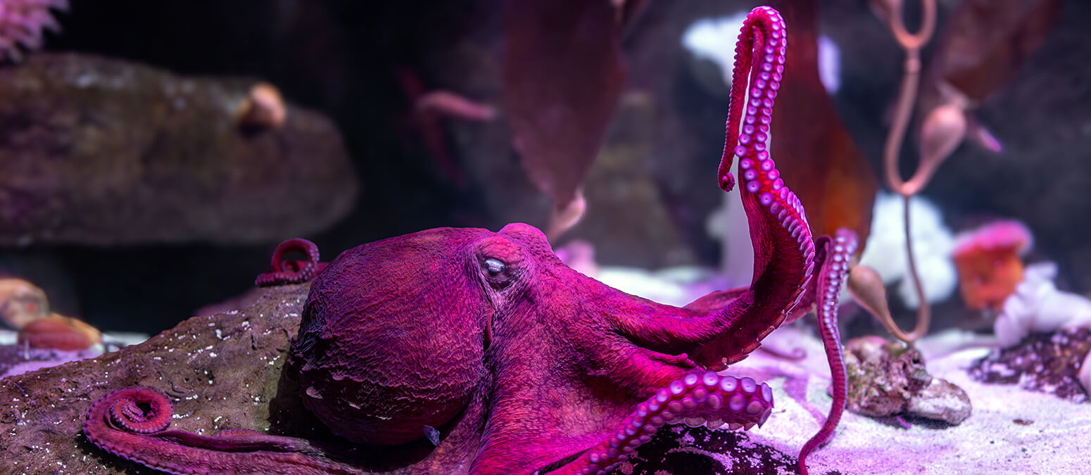 Come visit our giant Pacific octopus in our Waves of Wonder gallery, which is shared with other fascinating species like sea anemones and spotted lagoon jellies.