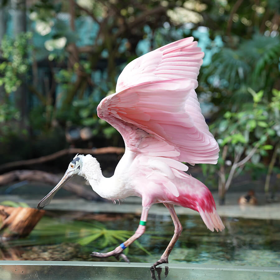 Birds soar overhead in our iconic 80-foot-tall glass dome, turtles bask in the sun, and freshwater fish dart through the water as you wander the wetlands trail. Enjoy the lush mangrove trees that have been flourishing at the Aquarium for 30 years. Lock eyes with an alligator, walk alongside the playful river otters, and marvel at roseate spoonbills and a white ibis. Gain a new appreciation for the animals that live in Florida’s freshwater and brackish environments as you explore this immersive habitat.
