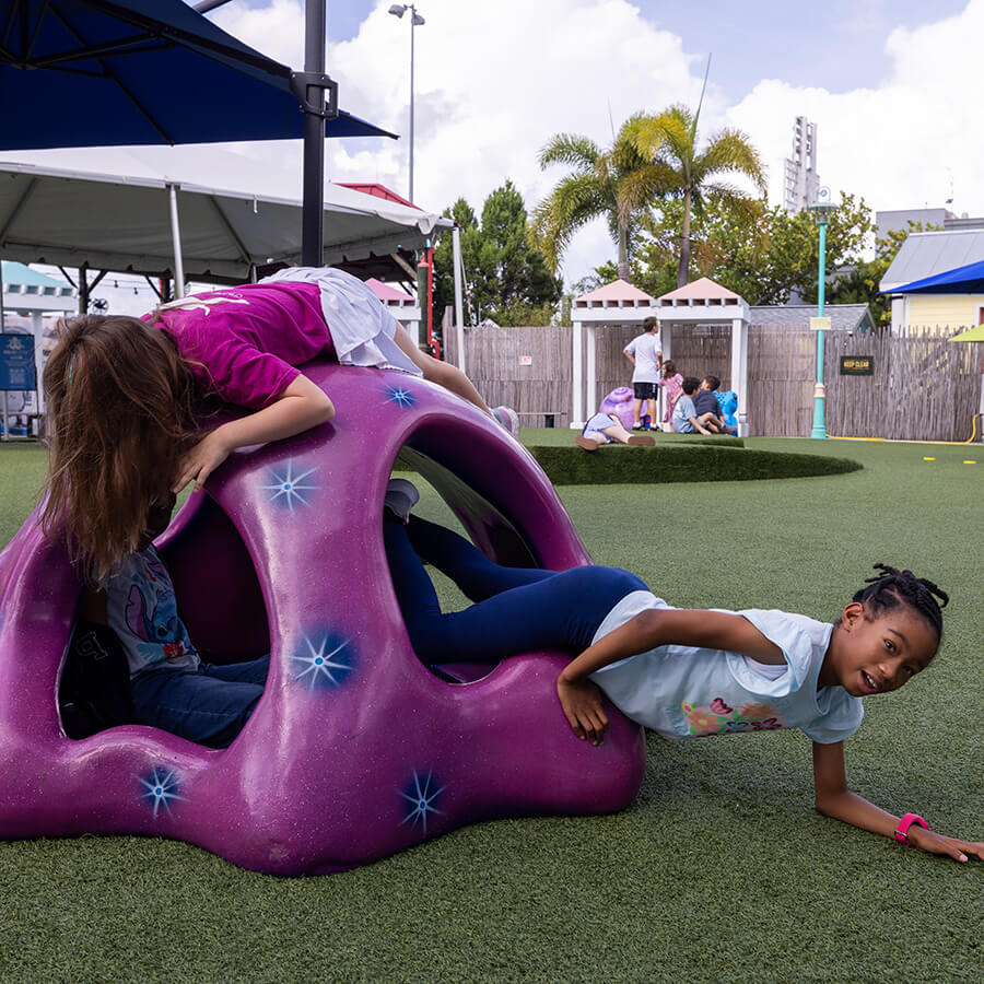 Enjoy playful moments in the Florida sun with interactive activities and relaxing vibes in our lush outdoor greenspace — perfect for family fun and fresh-air adventures!