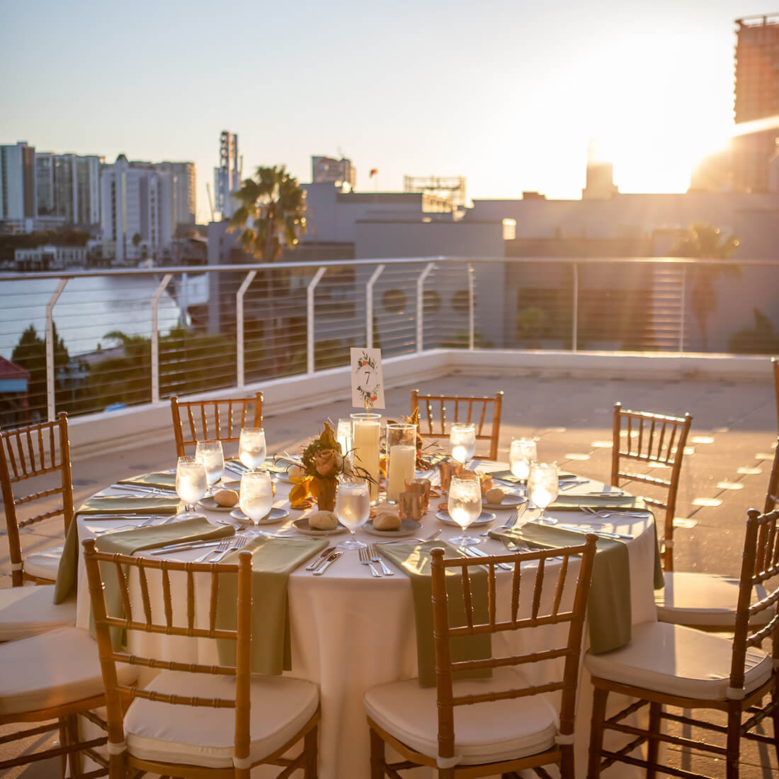 This solar panel covered pavilion on our Bayview Rooftop Terrace Powered by TECO offers views of Downtown Tampa and the beautiful Tampa Bay.