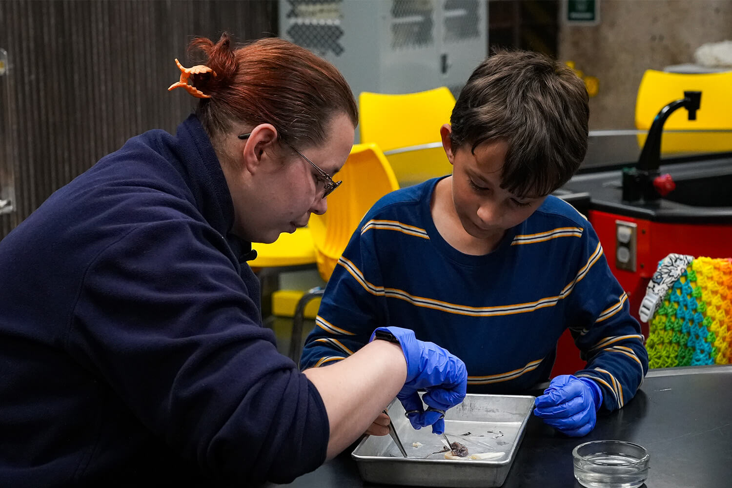 AquaEd experiences are available one Saturday and Sunday per month, with two sessions offered each day, and may vary by day and month. Each experience is $12 per person. Guests must check in at least five minutes before their scheduled time, and all participants must be at least five years old. Children ages 5–12 must be accompanied by a paying adult.