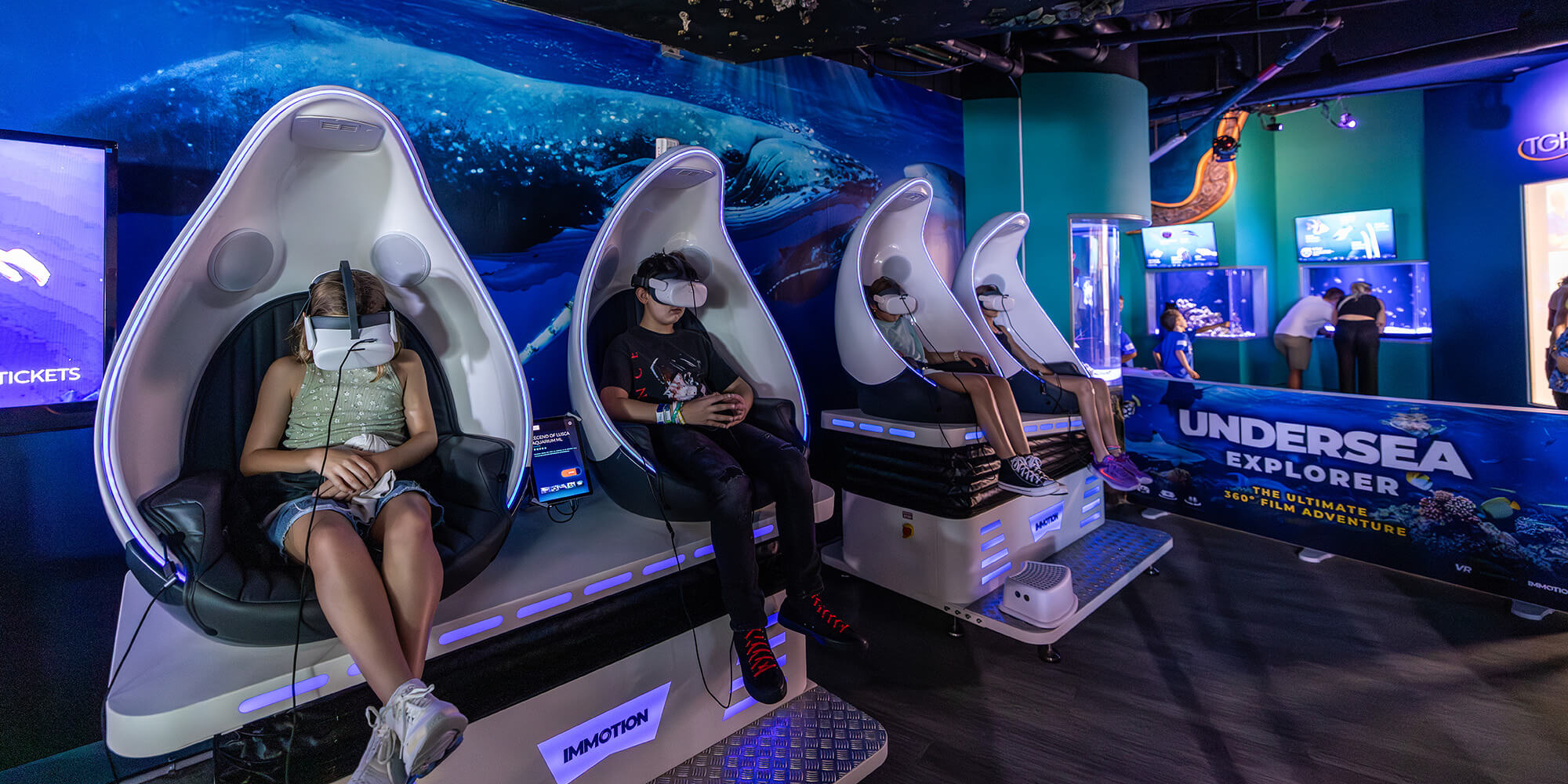 Ready to explore the ocean like never before? Immotion’s Undersea Explorer Virtual Reality (VR) experience lets you dive into breathtaking underwater worlds without ever leaving the Aquarium. Get a front-row seat to marine life in motion with your choice of six captivating, high-definition films.