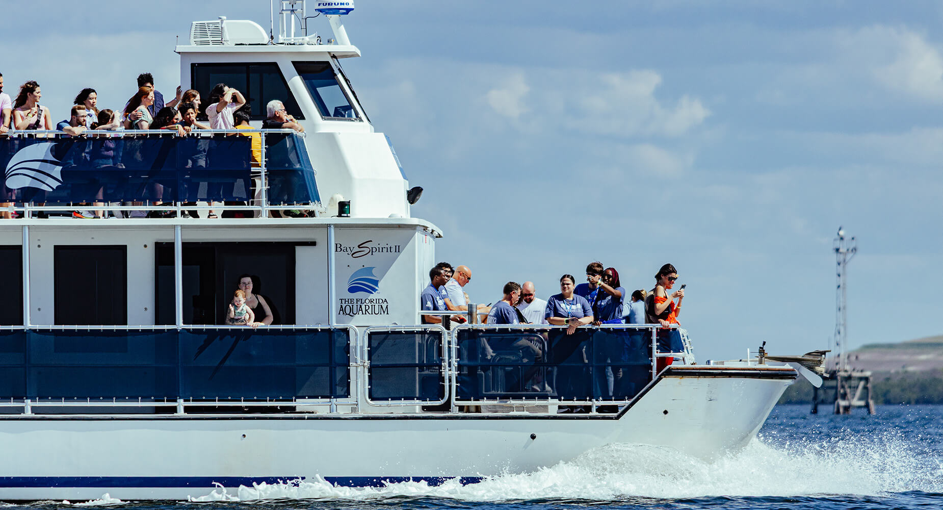 Enjoy the sea life inside the Aquarium, then venture out to admire the wildlife of Tampa Bay. Step aboard the Bay Spirit II, our 72-foot catamaran, where an experienced naturalist will guide you through the natural beauty of the Bay’s ecosystem. Watch for bottlenose dolphins, countless native bird species, and other amazing creatures that call the Bay home.