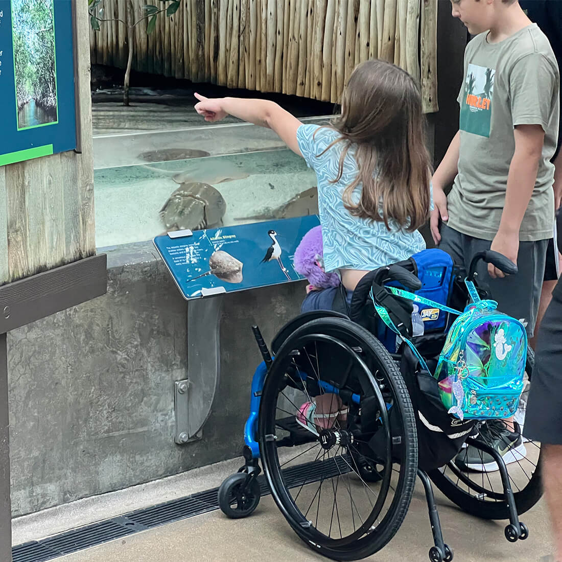The Florida Aquarium is committed to providing an engaging and immersive experience that is open, accessible and inclusive to each of our guests, including those with visual, hearing, physical or sensory-processing needs. We are proud to offer a variety of services to our guests to help make their visit extraordinary, regardless of their ability.